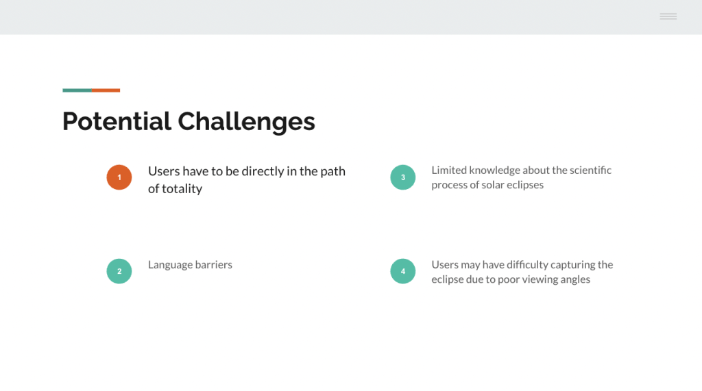 The most important insight was that many users located in the upcoming eclipse path would have limited English proficiency. To ensure accessibility, the app should rely on highly visual communication, simple symbols, recognizable shapes, and minimal reliance on full sentence instructions.